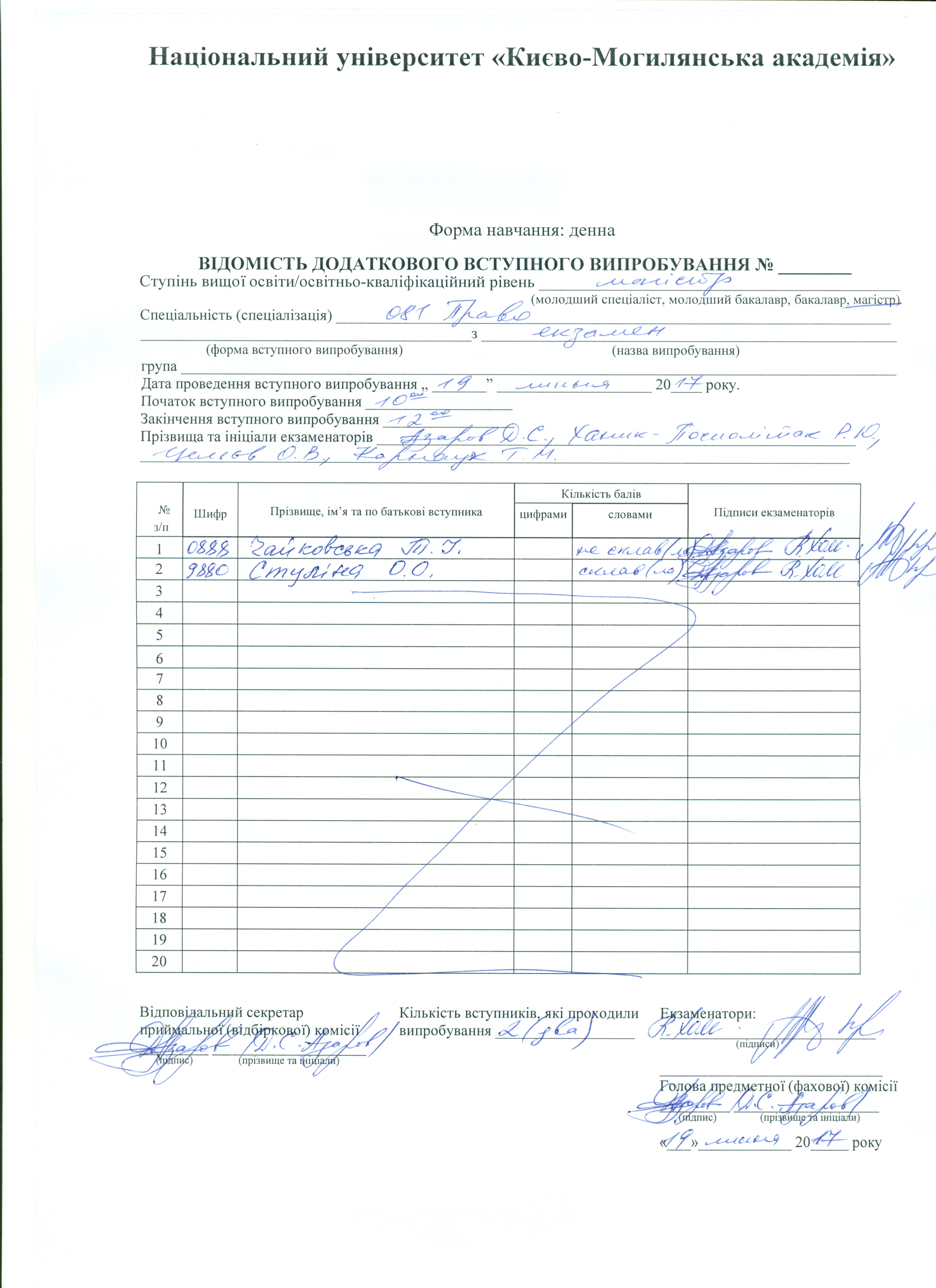 Результати іспитів\співбесід вступників за спеціальними умовами (бакалавр)