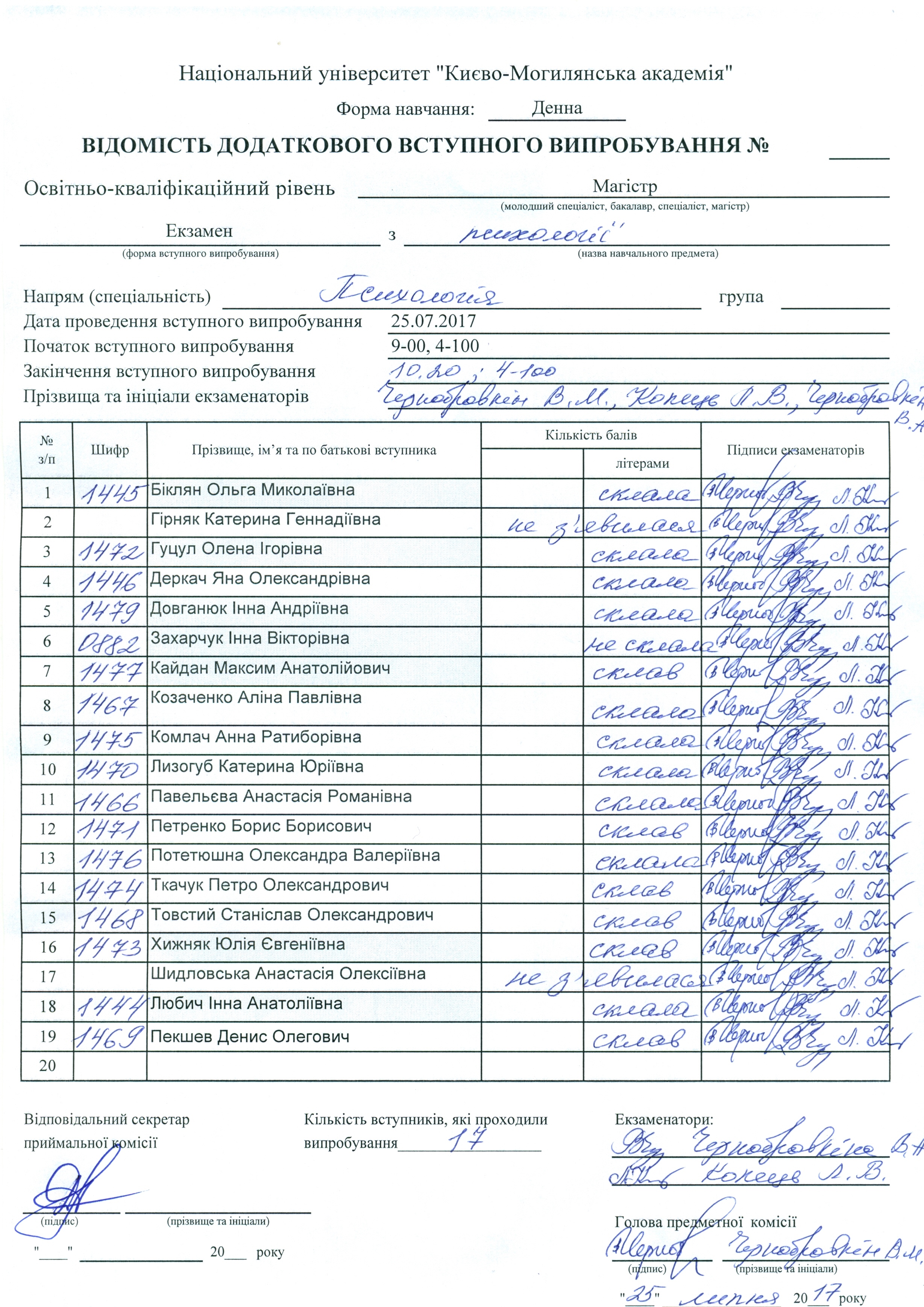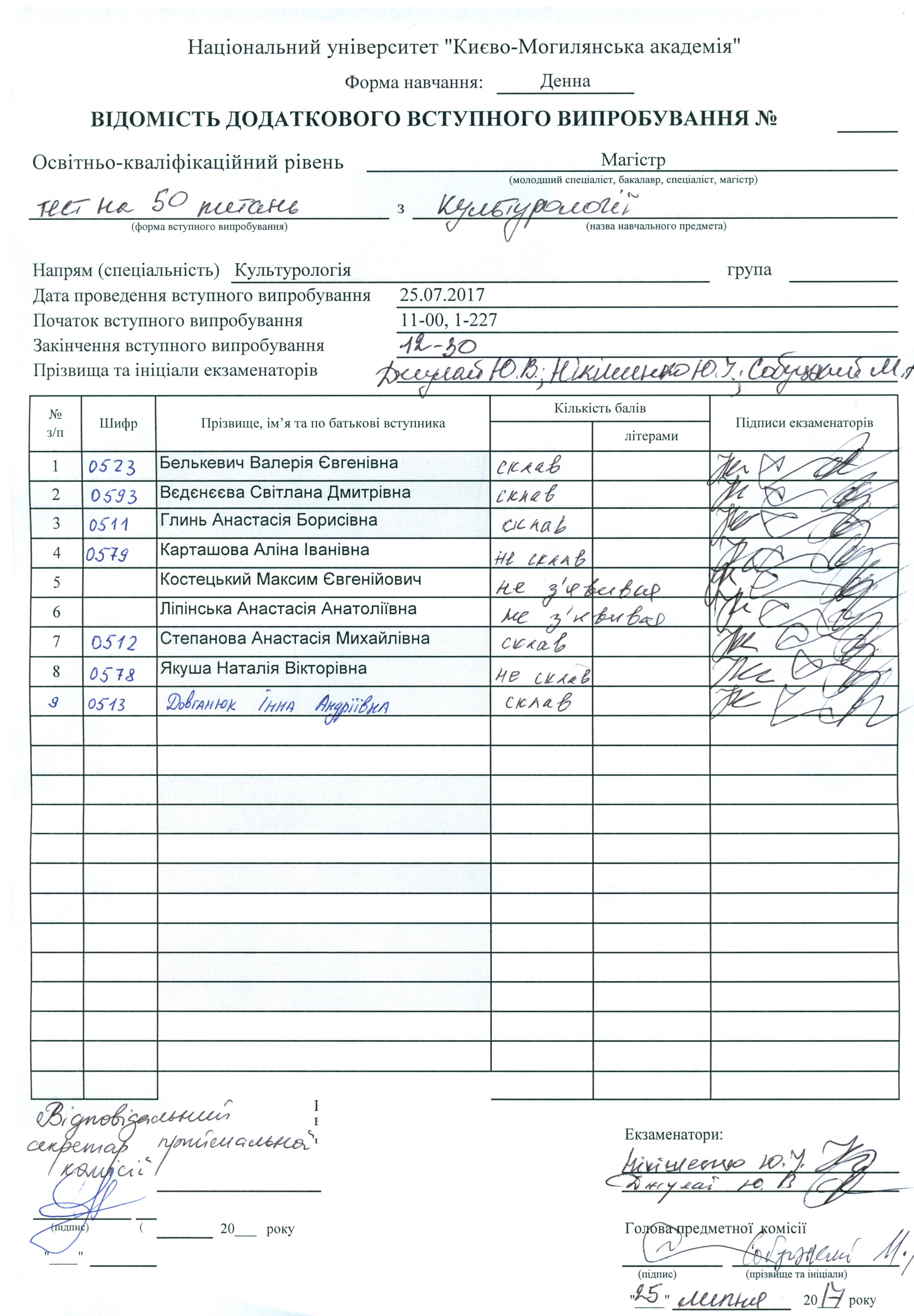 Результати додаткового вступного випробування (МП)